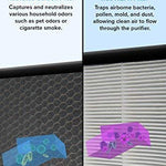 • True HEPA Filter beneficial for asthma and allergy sufferers, because the HEPA filter traps the fine particles (such as pollen and dust mite feces) which trigger allergy and asthma symptoms, DOE standard adopted by most American industries, remove at least 99.97% of airborne particles 0.3 micrometers (µm) in diameter like pollen, pet dander, mold spores, tobacco smoke, and dust.