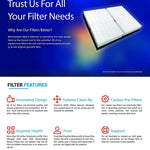 • Sale Includes 2 HEPA Filters, and 8 Carbon filters. Filters Measures 16.5" x 4.6" x 1.3"