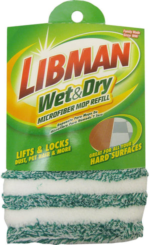 • Libman Commercial 119 Microfiber Wet/Dry Floor Mop Refill Pad, Microfiber, 18" Wide, Green and White - 2 Packages