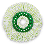 The Libman Green and White Tornado Spin Mop Refill has an extra-large premium microfiber head that is safe on hard floors surfaces. Durable enough to mop up tough messes, and can be used to clean virtually any hard-floor surface. The thick microfiber mop head thoroughly contacts your floor surface and traps dust, dirt, grime and messes. The microfiber head is machine washable multiple times. Spin Mop removes over 99% of staphylococcus aureus and E. coli on ceramic tile and wood floors when used with water. Microfiber is made of Polyester Polyamide.