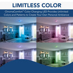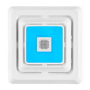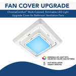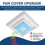 Maximize your early morning routines and unwind at night by enhancing your existing bath fan with the Broan-NuTone Replacement Bath Fan Cover, featuring the ChromaComfort color changing LED light and Sensonic Wireless Bluetooth speaker. This bath fan cover allows you to personalize the ambience in your bathroom with the color changing LED light and Bluetooth speaker to provide excellent crisp and bold sound with endless color and pattern options. From the convenience of your smart phone or tablet, you can easily customize lighting themes, adjust brightness, and set timers with the Apple or Android App while enjoying your favorite music, podcasts, news or audio books. Thanks to a quick connect plug, this DIY replacement cover can be installed in 5 minutes or less with no tools, no wiring, and no ceiling patching or cutting required, and it conveniently hides existing ceiling cuts. It's efficiently designed with fewer vent slots to stay clean longer, and the attractive bright white finish matches most modern white ceiling paints. This fan cover measures 10-1/4" x 9-3/4" x 2-3/8" and includes 2 sets of springs for use with multiple Broan or NuTone bath fan models including those with fan housing dimensions of 7-1/2" x 7-1/4", 8-1/4" x 8", and 8" x 7-1/4". The factory set PIN is 1234. Go to the ChromaComfort App instructions for more details.
