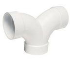 The 3-Way 90° Double Sweep Elbow is a special fitting most often used for directional routing of two branches back to a main trunk line. The unique design allows a split branch to connect to a trunk line without having an offset. Full HUB fitting for direct connection to pipe.