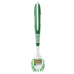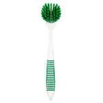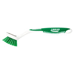 The Libman Kitchen Brush has a no slip, ergonomic rubber handle grip with extra durable polymer fibers that are dishwasher safe. A scraper edge is molded into the front for removal of stuck on food. Injection molded polypropylene with recycled PET fibers. Dishwasher safe with convenient hole for hanging and drying.