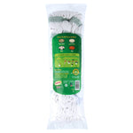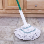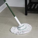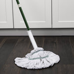 The Tornado Mop Refill is a easy-to-change mop head that is machine washable and reusable. The 3 green bands prevent tangling, while the larger mop head covers more surface area cutting down your mopping time. The polyester yarn resists odor causing bacteria.